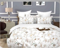 The "Alps" bedding set brings a fresh, serene, and modern floral design to the bedroom. The name "Alps" suggests a clean, crisp, and refreshing aesthetic, which is perfectly captured by the set's cool color palette and nature-inspired pattern.